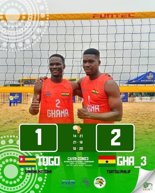 Face au Ghana 3, les Togolais ont livré une prestation solide mais se sont inclinés de justesse après trois sets très disputés (14-21, 21-18, 18-20). Le duel a mis en lumière la combativité de la paire togolaise, qui n’a toutefois pas su concrétiser les moments clés du match.