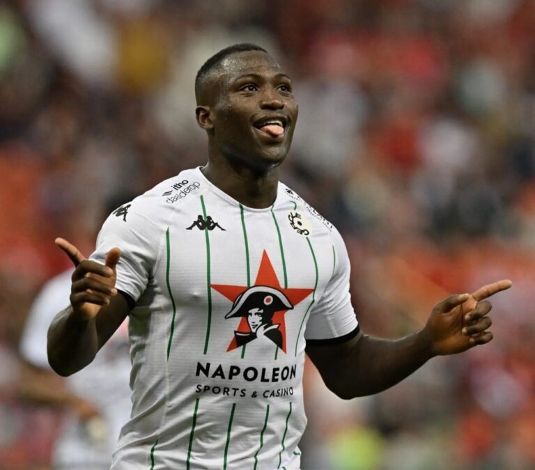 Kévin Denkey transforme le penalty après une main dans la surface adverse.