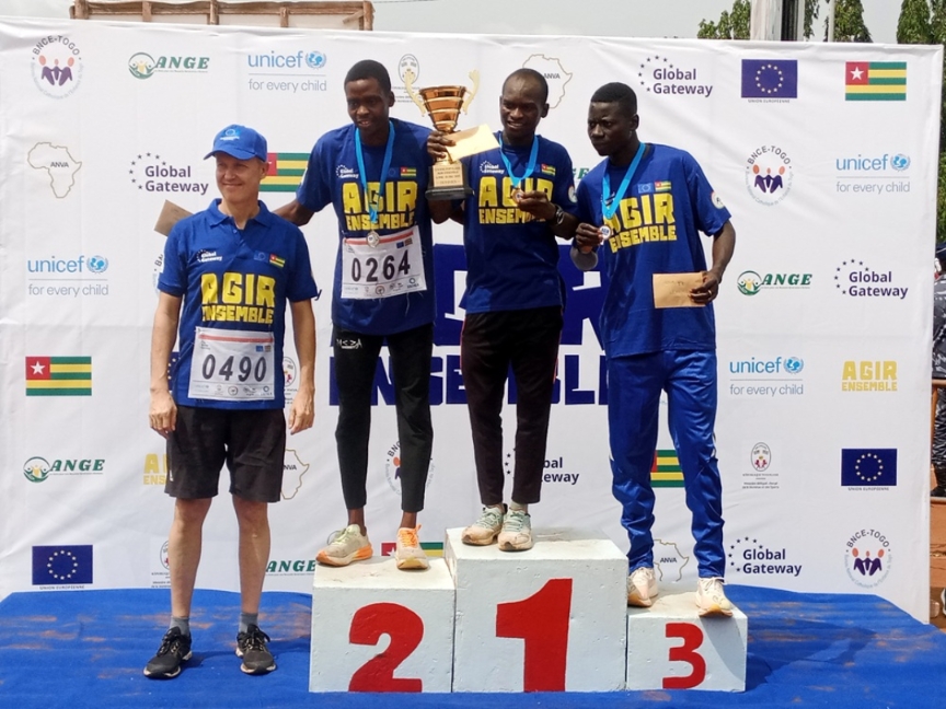 Dans le cadre du projet « Agir ensemble », la Délégation de l’Union européenne au Togo, en partenariat avec la Fédération Togolaise d’Athlétisme (FTA), l’UNICEF Togo et trois organisations œuvrant pour la protection de l’enfance, a organisé une grande course populaire le samedi 13 décembre 2025 dans la commune d’Agoènyivé 1.