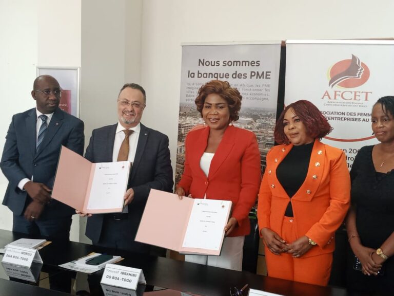Dans la dynamique de son engagement permanement à accompagner durablement la femme entrepreneure togolaise, la filiale togolaise de la Bank of Africa (BOA-Togo) a franchi, ce mercredi 29 novembre, un nouveau cap. Il s’agit de la signature d’une convention de partenariat avec l’Association des Femmes Chefs d’Entreprises du Togo (AFCET), le collège des entreprises dirigées par des femmes au Togo.