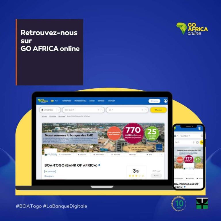 «Nous sommes heureux de vous informer que BOA-TOGO est désormais présente sur le site officiel de “GO AFRICA online”», a annoncé, cette semaine sur ses canaux digitaux, BOA-Togo.