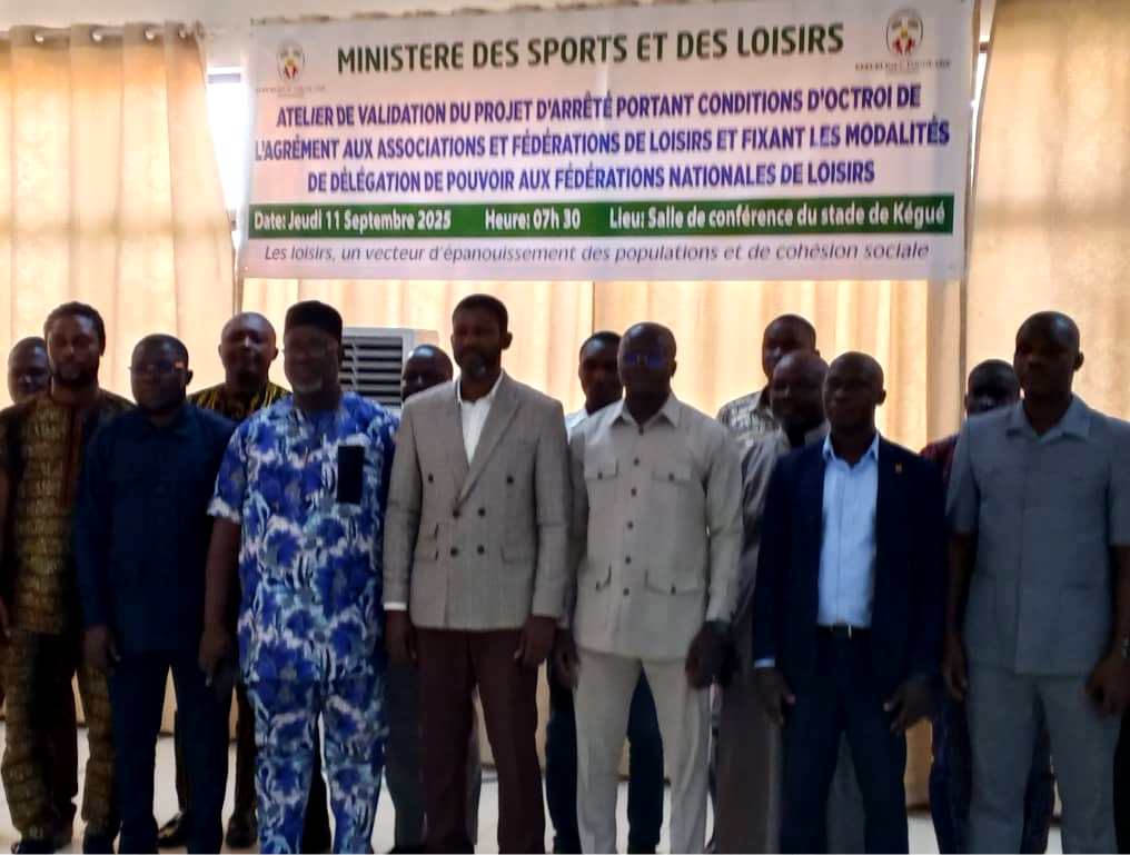 Le ministère des Sports et des Loisirs organise ce jeudi 11 septembre 2025, dans la salle de conférence du stade de Kégué à Lomé, l’atelier national de validation du projet d’arrêté fixant les conditions d’octroi d’agrément aux associations et fédérations de loisirs, ainsi que les modalités de délégation de pouvoir aux fédérations nationales.