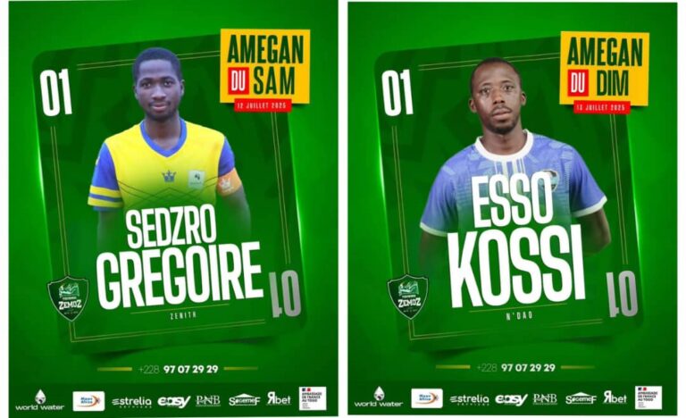 Le tournoi ZEMOZ continue de révéler ses talents, et pour ce nouveau week-end de compétition, deux noms ont brillé : Grégoire Sedzro (Zenith FC) le samedi et Kossi Esso (N’DAO FC) le dimanche. Tous deux ont été désignés Amegan, titre décerné au joueur le plus complet du jour selon un vote croisé entre supporters, journalistes et arbitres.